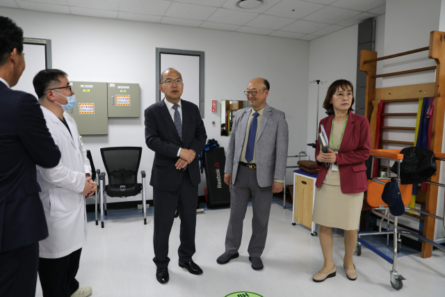 한국보훈복지의료공단 윤종진 이사장(왼쪽 세 번째)이 20일(월) 인천보훈병원을 방문해 의료현장을 확인하고 있다